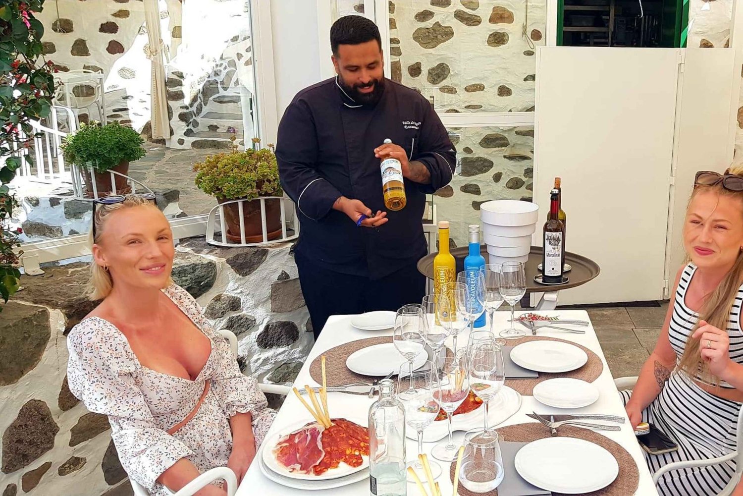 El paquete estándar te permitiría disfrutar de una visita y una Ruta de Cata de Embutidos y Vinos. Si quieres llevar esta experiencia un peldaño más arriba en la escala culinaria, puedes acudir a la comida o cena opcional en el restaurante 'Valle de Mogán' para deleitarte con algunos platos locales elaborados con los ingredientes más frescos.