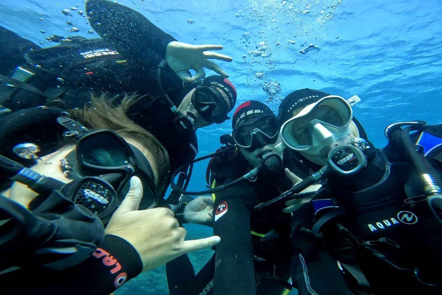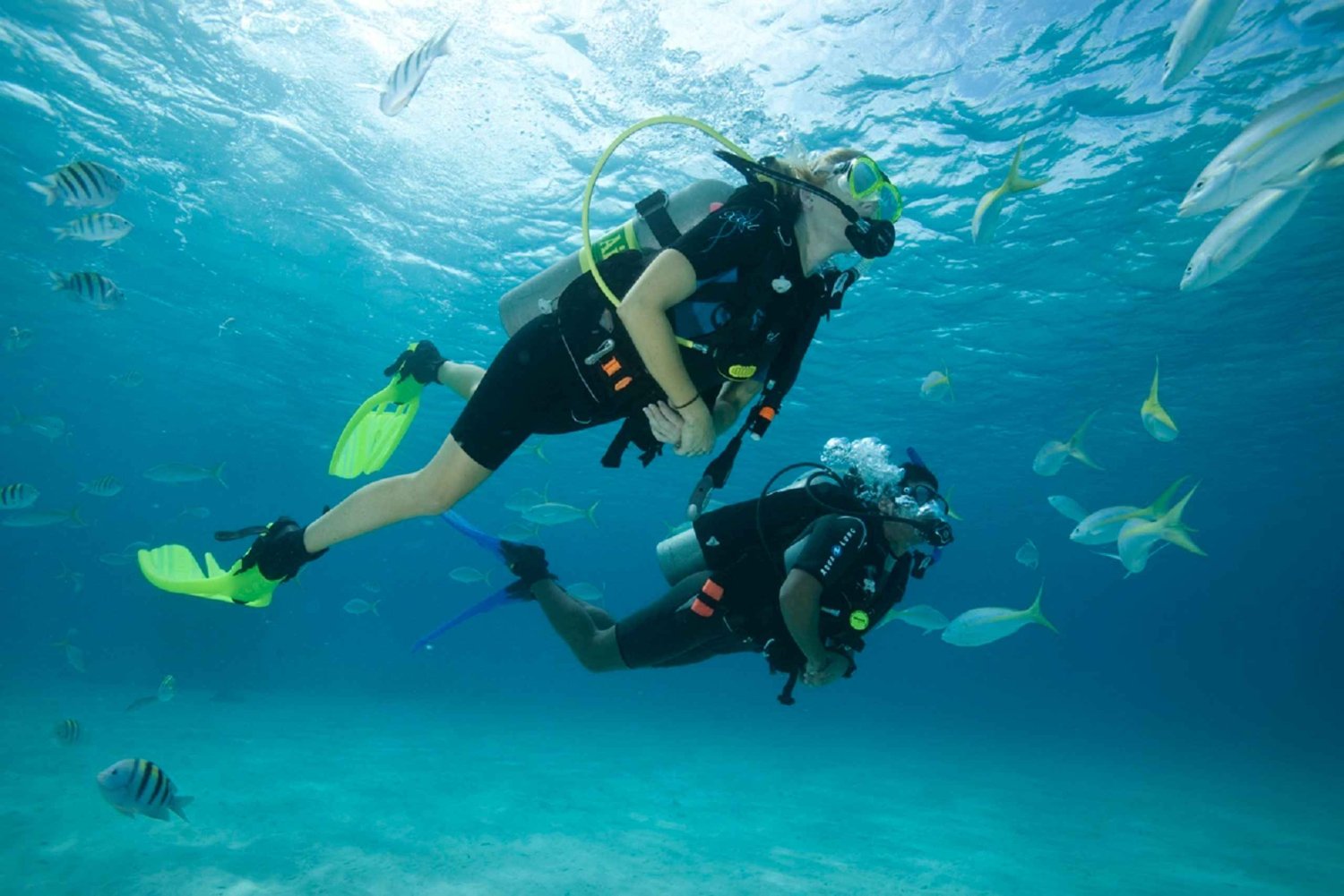 Después de la sesión en aguas confinadas, realizarás una inmersión real (hasta 12 metros/40 pies) bajo estrecha supervisión. Explorarás arrecifes de coral, vida marina y disfrutarás de una auténtica experiencia de buceo.