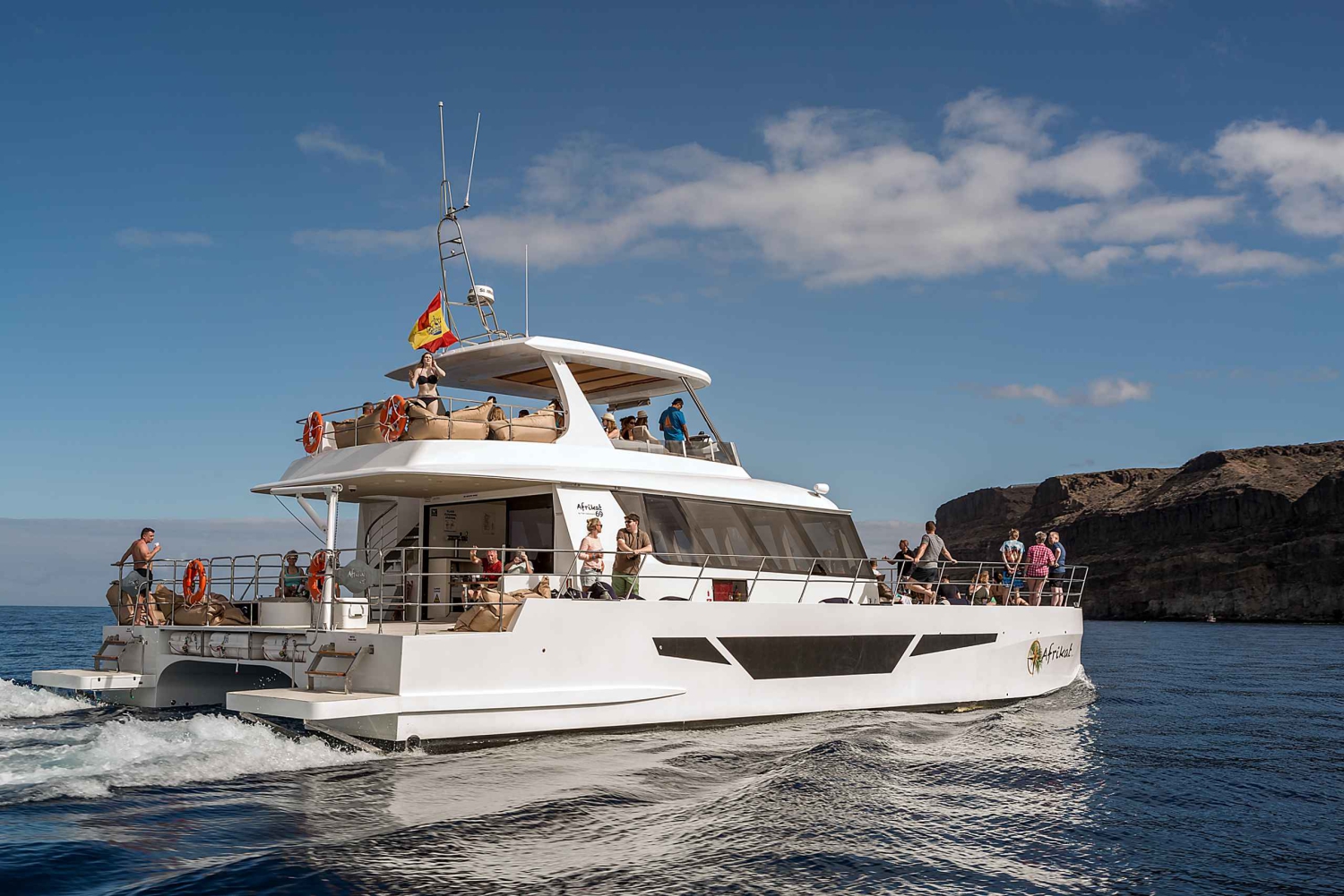 Disfruta de mucho más que un simple paseo en barco con este divertido y relajante crucero Afrikat desde Puerto Rico de Gran Canaria. Haz una parada para nadar y bucear en una bahía de aguas cristalinas y disfruta de emocionantes actividades acuáticas.