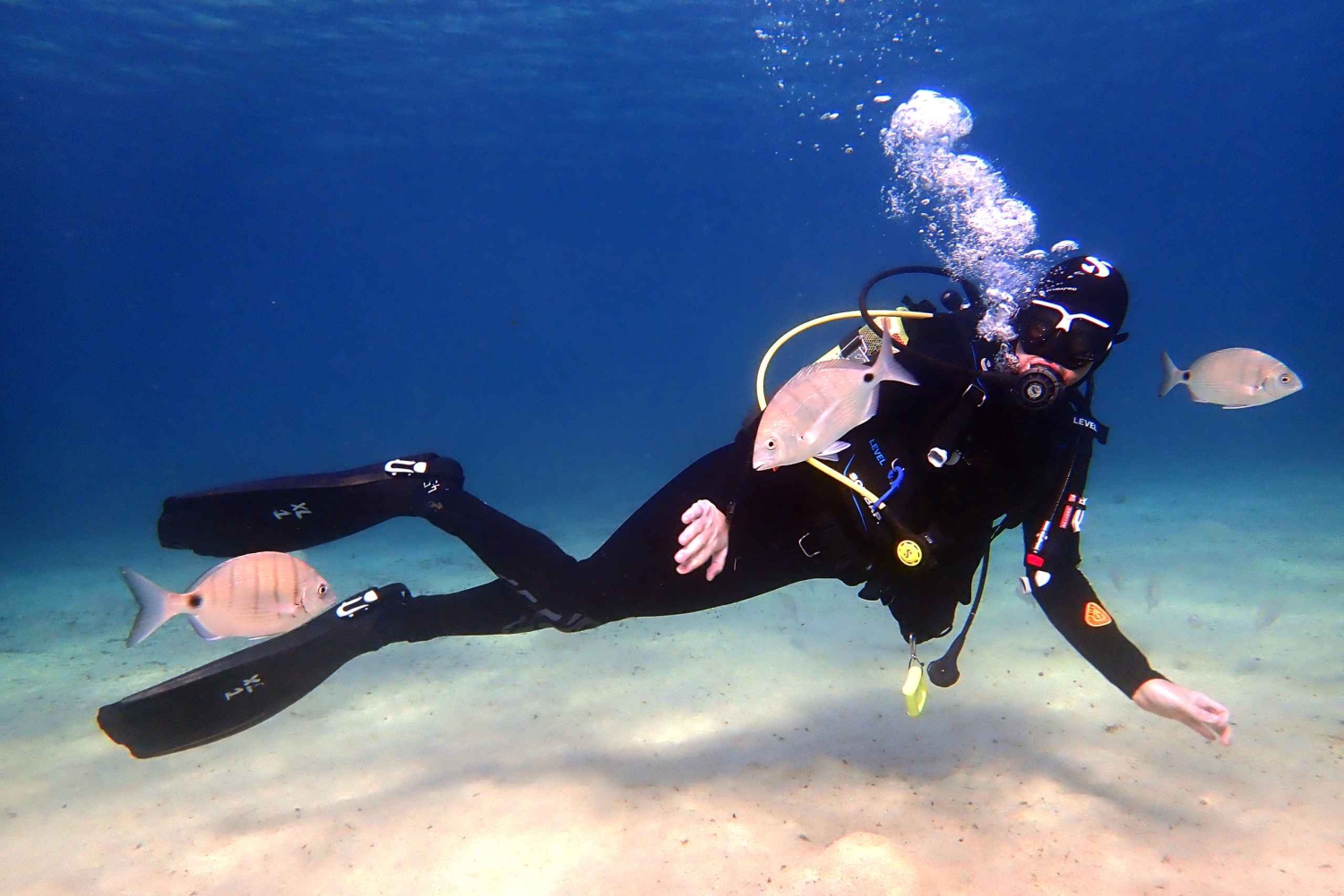 La primera inmersión (máx. 5 metros) te ayuda a sentirte cómodo bajo el agua.