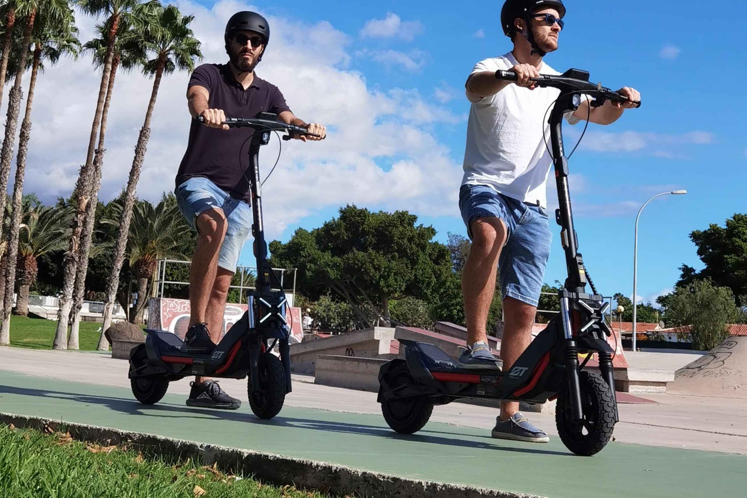 Explora Maspalomas en una excursión en scooter eléctrico. Recorre las emblemáticas Dunas de Arena, el vibrante paseo marítimo de Meloneras, el emblemático Faro de Maspalomas y los pintorescos carriles bici.