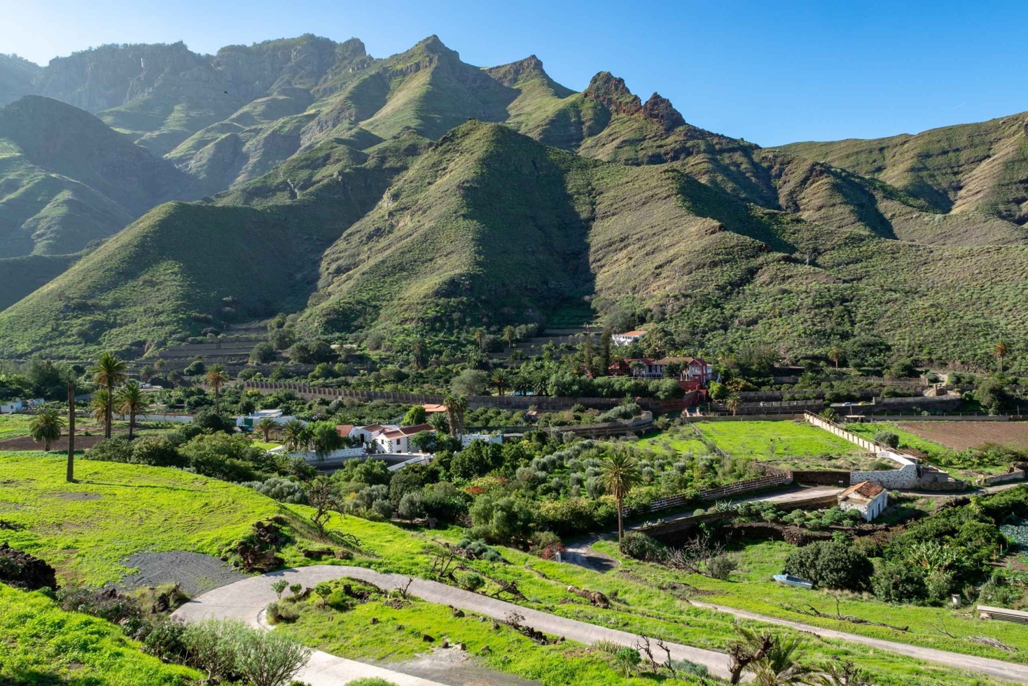 Build a complete picture of Gran Canaria on a full-day coach tour of all 4 coasts. Start by heading southwest to the pretty fishing village of Puerto de Mogán. Continue through a landscape of volcanic mountains to the typical Canarian town of San Nicolás.  Marvel at the cliffs on the west coast as you make your way to Puerto de las Nieves in Agaete to the north. Pass through the villages Gáldar, Guía, and banana plantations of Arucas Arrive at Las Palmas and stroll along Canteras Beach to take photos of the Alfredo Kraus Auditorium. Return to the south of the island along the east coast.
