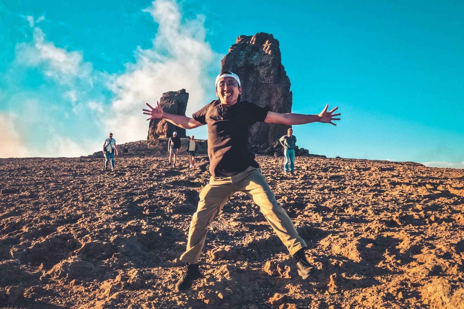 Fall in love with the breathtaking landscapes and geological history of Gran Canaria on a guided tour tailor-made for nature enthusiasts. Kick off your eco-friendly adventure at Pico de Bandama, where you’ll marvel at panoramic views of the island's diverse topography. Trace the island’s volcanic origins as you explore the ancient Caldera of Bandama as your guides bring the island's geological story to life. Discover Cruz de Tejeda, where you can visit local markets and purchase unique products, supporting sustainable practices and local communities. Enjoy an original meal at Tajinaste Restaurant, where seasonal ingredients meet fusion cuisine for a singular culinary experience. The journey continues with a hike to the majestic Roque Nublo, one of Gran Canaria's most iconic natural landmarks and part of a UNESCO World Heritage site, before concluding at Pico de Las Nieves for a serene sunset with sweeping island views.