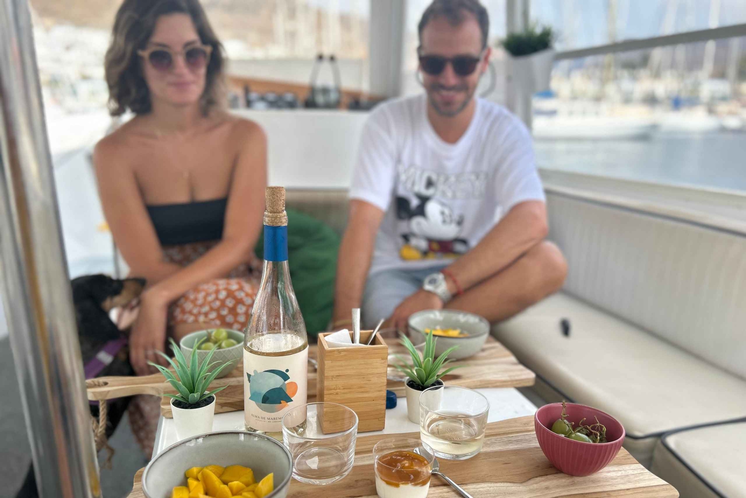 Our “3h GOURMET EXPERIENCE” it's a taste of canary wines PAIRED with local food from all parts of our islands. Aboard of our charming and cozy boat we will show you the most beautiful cliffs and beaches in the South of Gran Canaria.