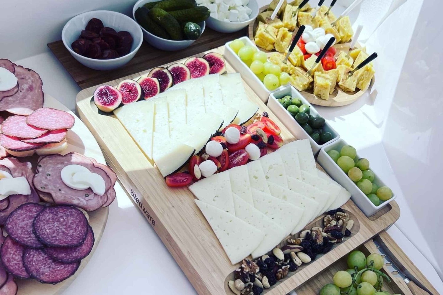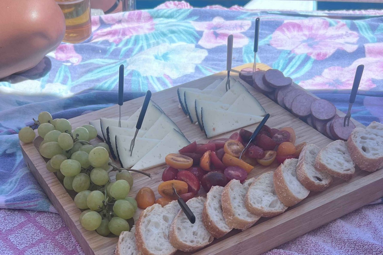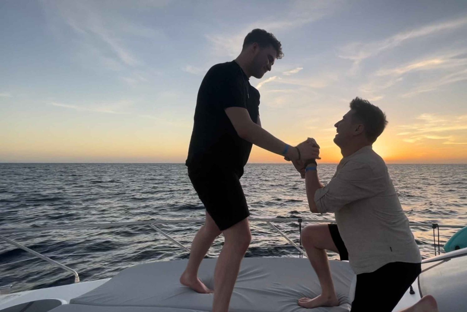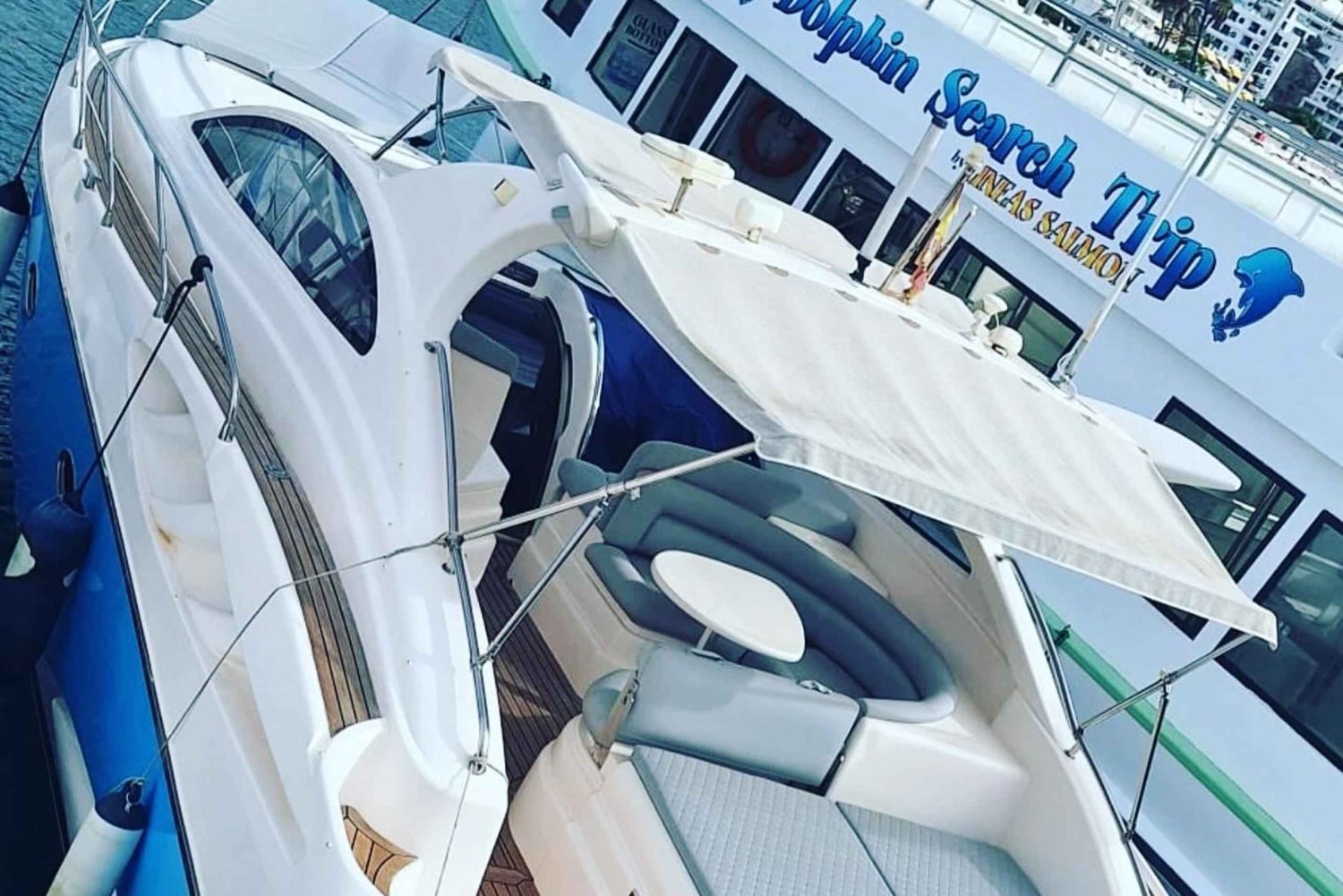 Enjoy a private yacht for up to 8 people. Sip on an open bar with beer, sangria, water, and Coca-Cola. Snack on tapas and take advantage of water activities, snorkeling equipment, and 2 stand up paddle boards. Get discounts for jet ski and parasailing or our sea scooter pro.