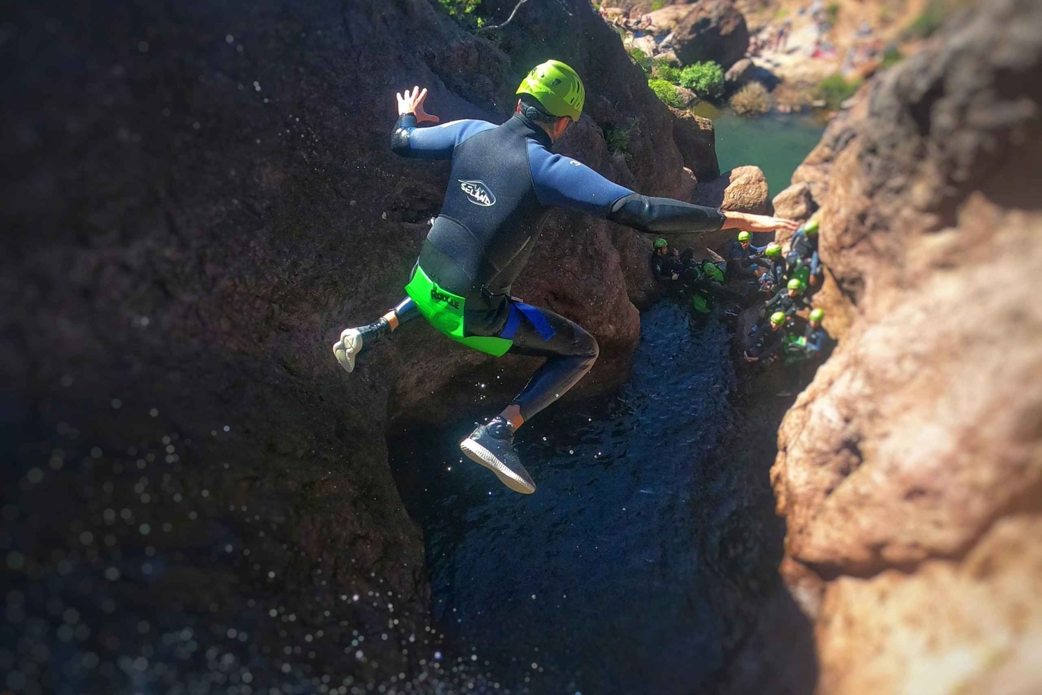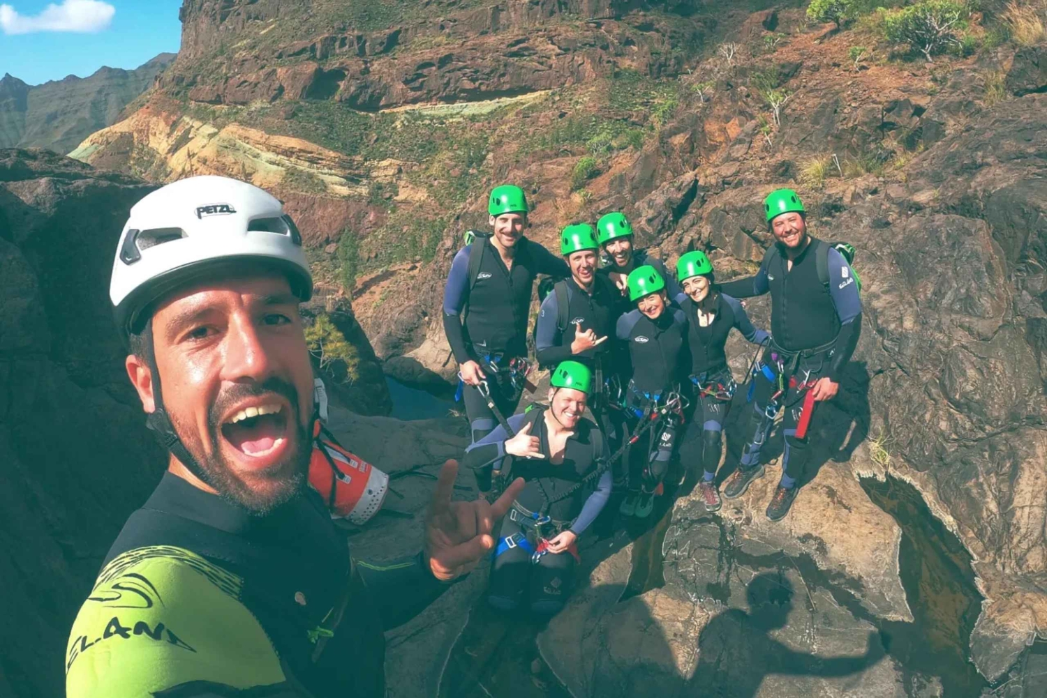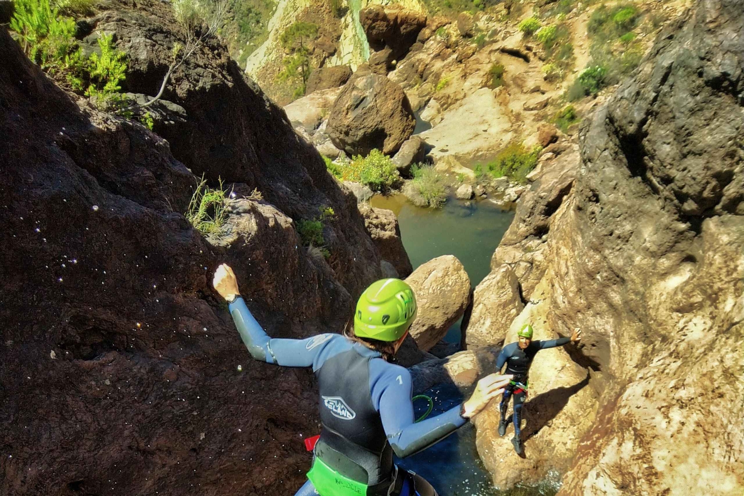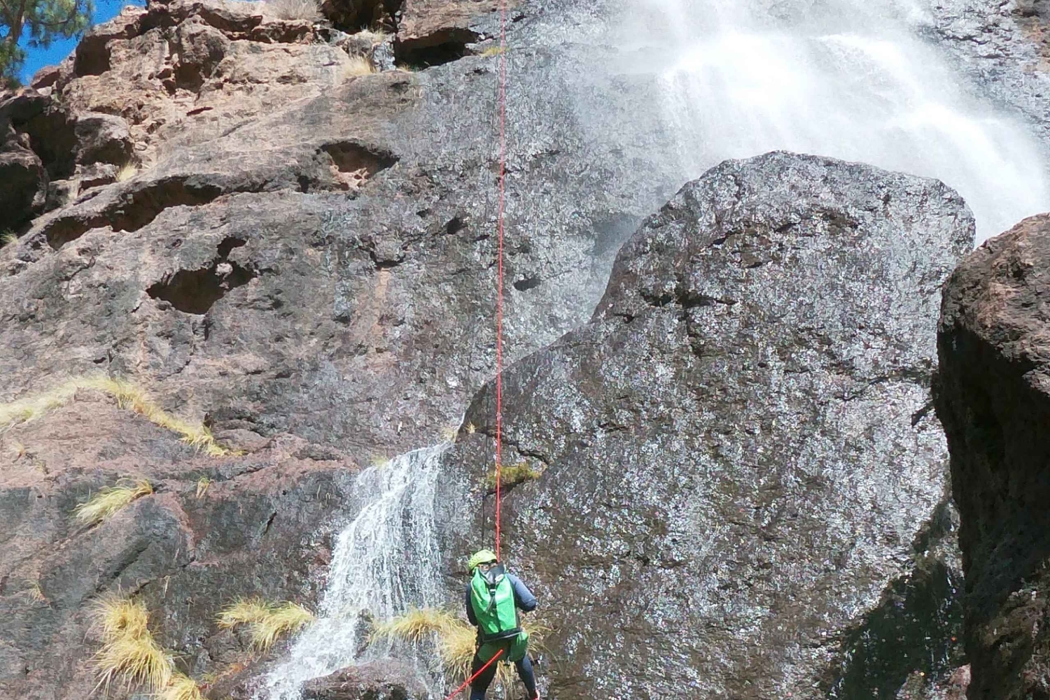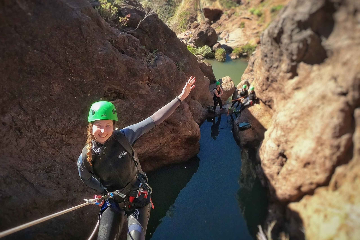 We will meet at 9:30 at the meeting point located in one of the most photographed places on the island, 'The Rainbow Mountain' in Los Azulejos, Veneguera, Gran Canaria. After providing the material, we will ascend for 35 minutes along a hiking path until we reach the canyon with awesome views. We will take a break to take the included picnic and get some energy. You are going to enter a canyon with many jumps of different heights into the water. Jump (optionally) up to 10 meters with the best background!! And to finish you are going to do a 50 meter high rappel that will explode your adrenaline. In total, you will do 4 rappels between 9 and 50 meters high and many fun jumps. Remind you that if you need transfer you can request it and if we have space available we will pick you up and drop off you to your hotel. I encourage you to get to know one of the most famous and amazing places on the island in a different, fun way and then you can share awesome pics with your friends.Includes
