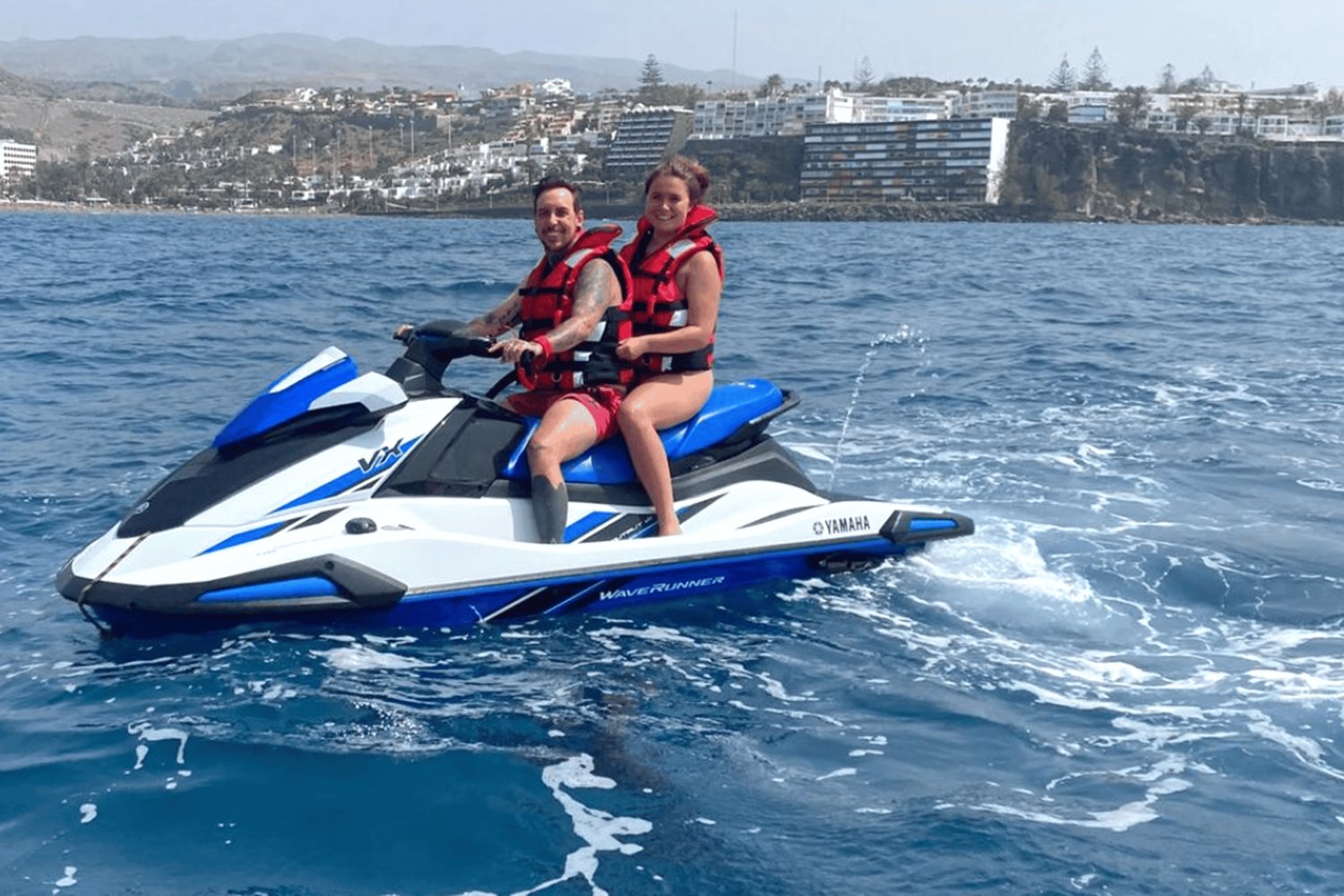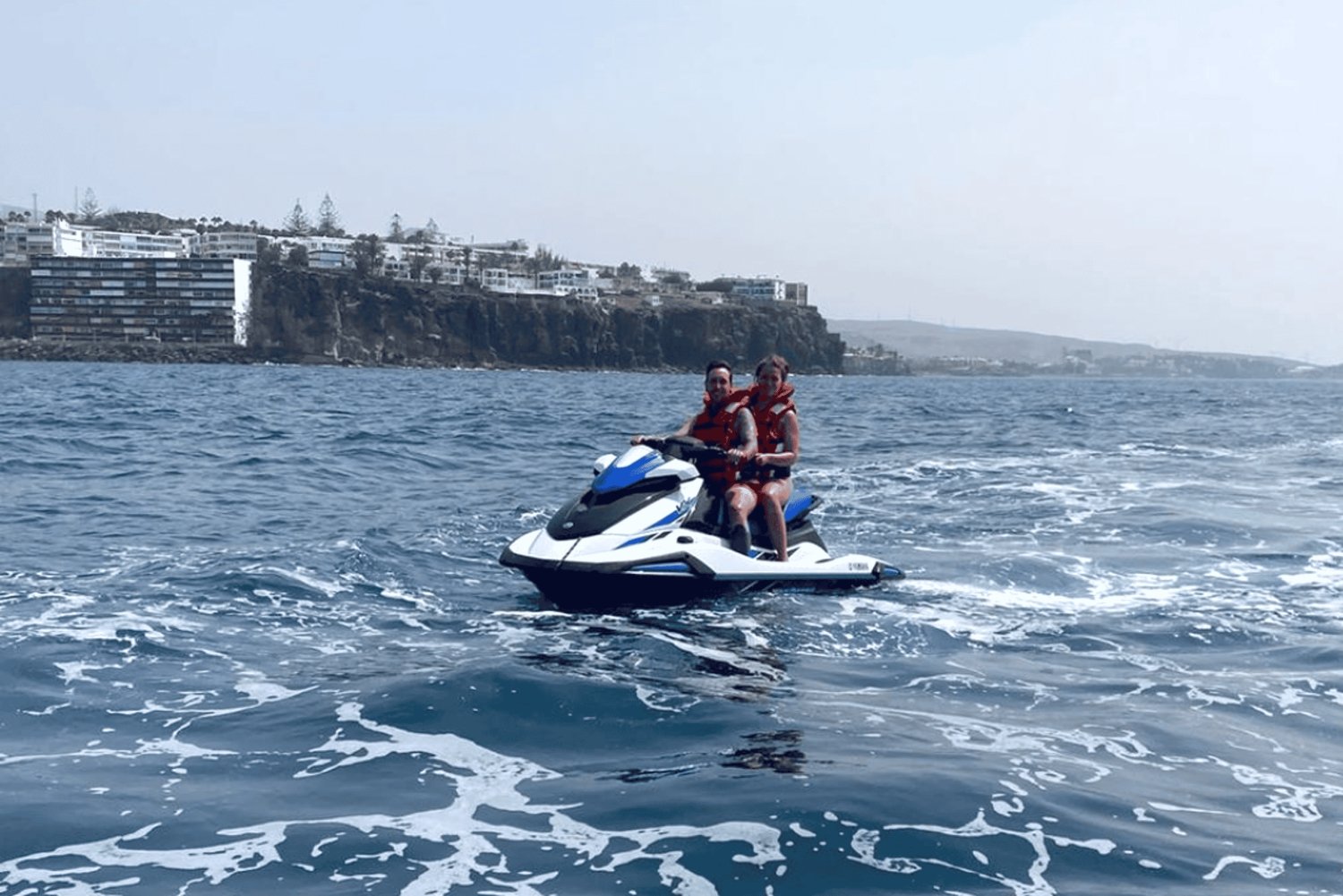 Be picked up from your hotel in Playa del Inglés and relax on the transfer to the beach. Meet your guide and listen to a short briefing that ensures that you can operate the jet ski with confidence. Put your things away in the provided locker for safe-keeping.
