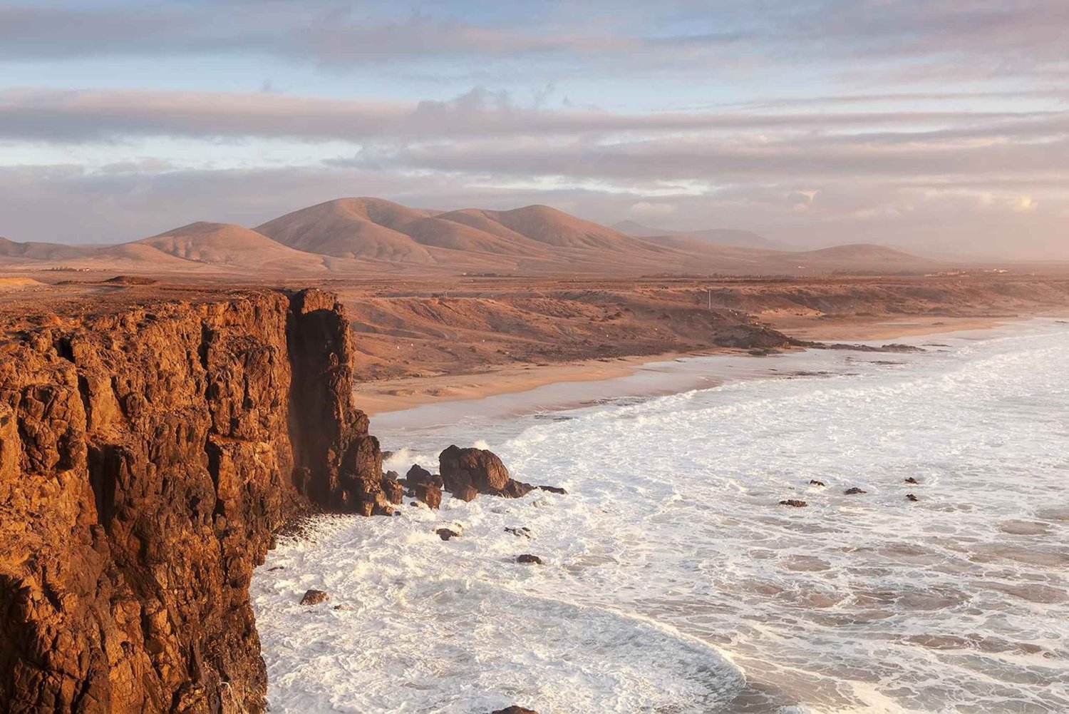 Explore northern Fuerteventura and enjoy free time in Corralejo on this combo tour from Morro Jable and Costa Calma. Visit Popcorn Beach, El Cotillo, and a volcanic crater.