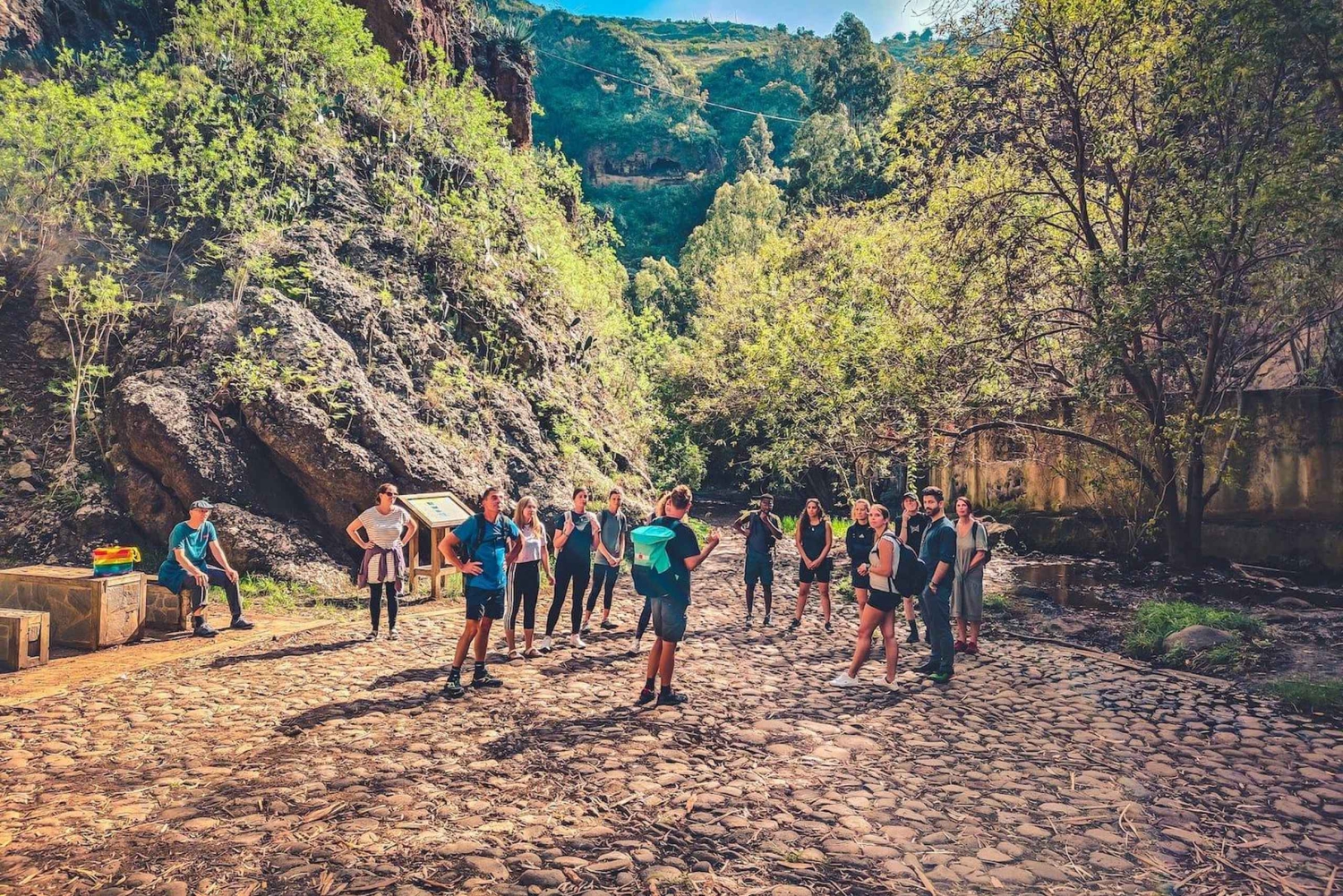 Continue to the breathtaking Azuaje Ravine, nestled within the remnants of the ancient Doramas Forest, where you’ll embark on an adventurous hike through lush laurel forests, cross pristine streams, and discover unique biodiversity. Along the way, explore the curious ruins of the Azuaje Spa, hidden deep within the ravine, a haunting reminder of the island's storied past. The tour then leads to Ecofinca Ventana Verde, a model of sustainable farming, where you’ll savor organic local produce and gain insight into eco-friendly agricultural practices.