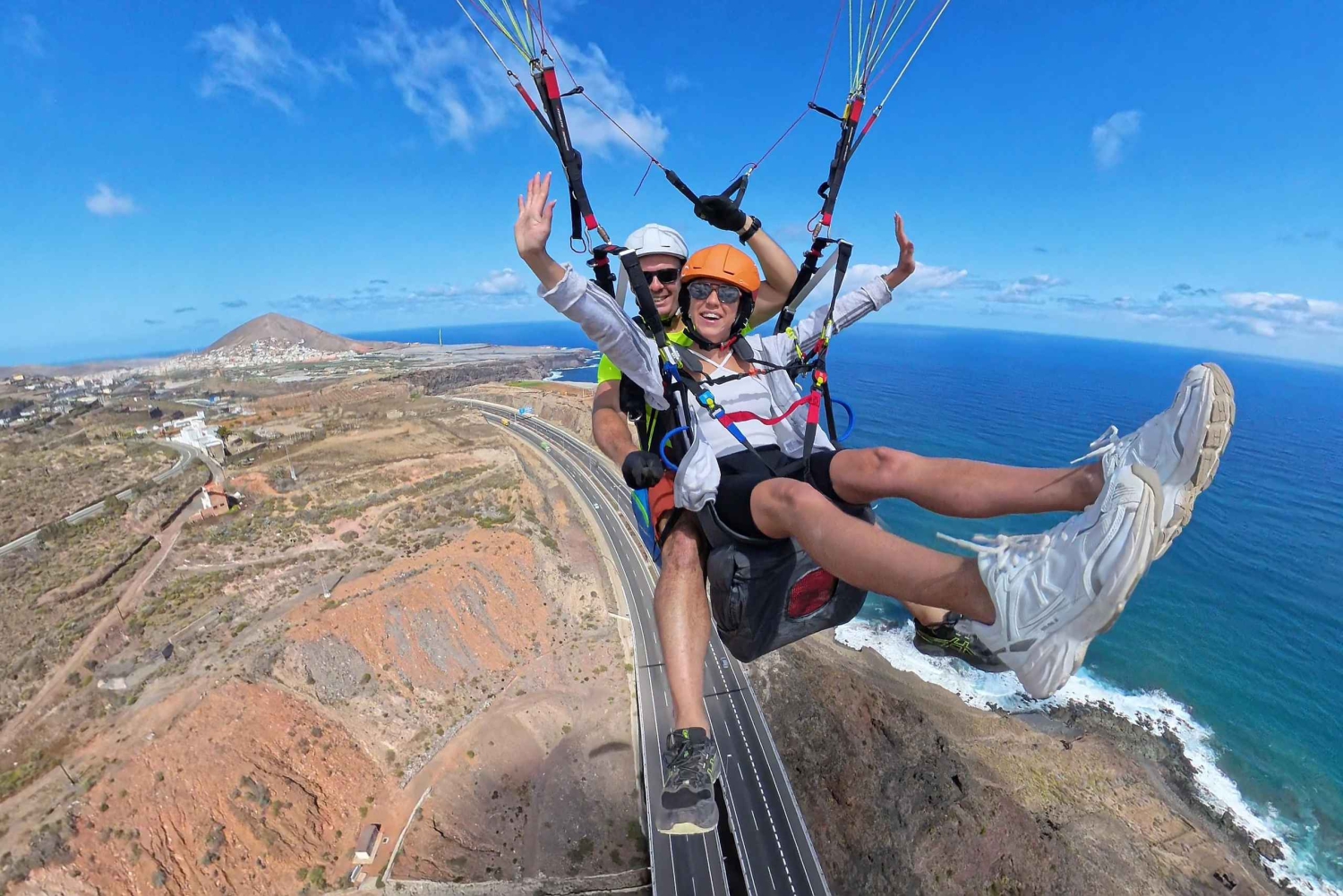 Begin your adventure by launching from iconic sites like Cenobio de Valeron, El Rincón or Las Coloradas, with a certified pilot. Choose your vibe—Relax for serene coastal glides, Adventure for hands-on control, or Adrenaline for dives and spins. Gaze at turquoise waters, rugged ravines, and Mount Teide in the distance.