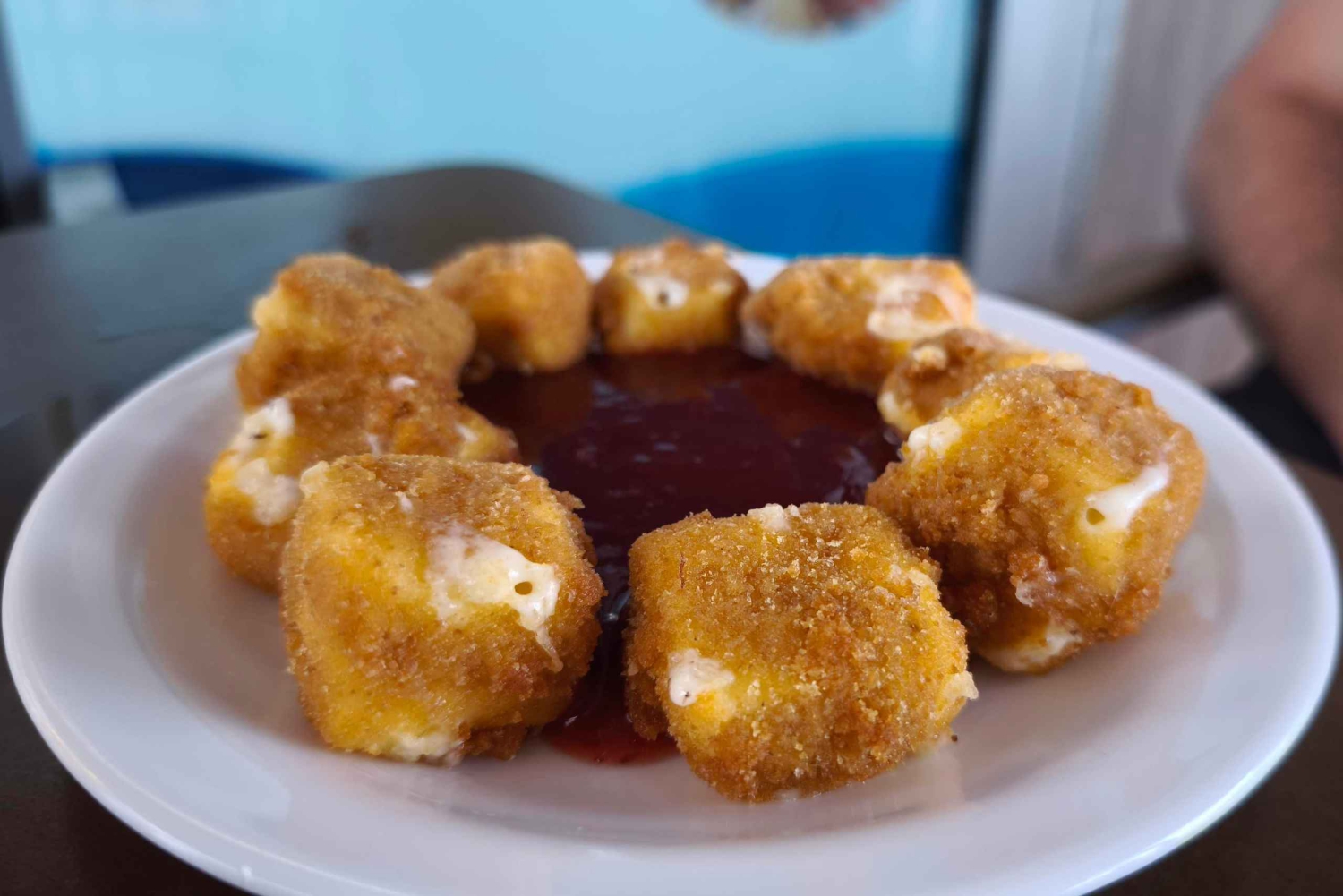 After landing, head to a local restaurant, a cozy spot buzzing with locals. Savor a curated platter: croquetas de queso (cheese croquettes), wrinkled potatoes with red/green mojo, fresh goat cheese from nearby farms, and grilled sardines. Pair your meal with a non-alcoholic welcome drink—add Canarian wine for €10 (minimum 3 people).