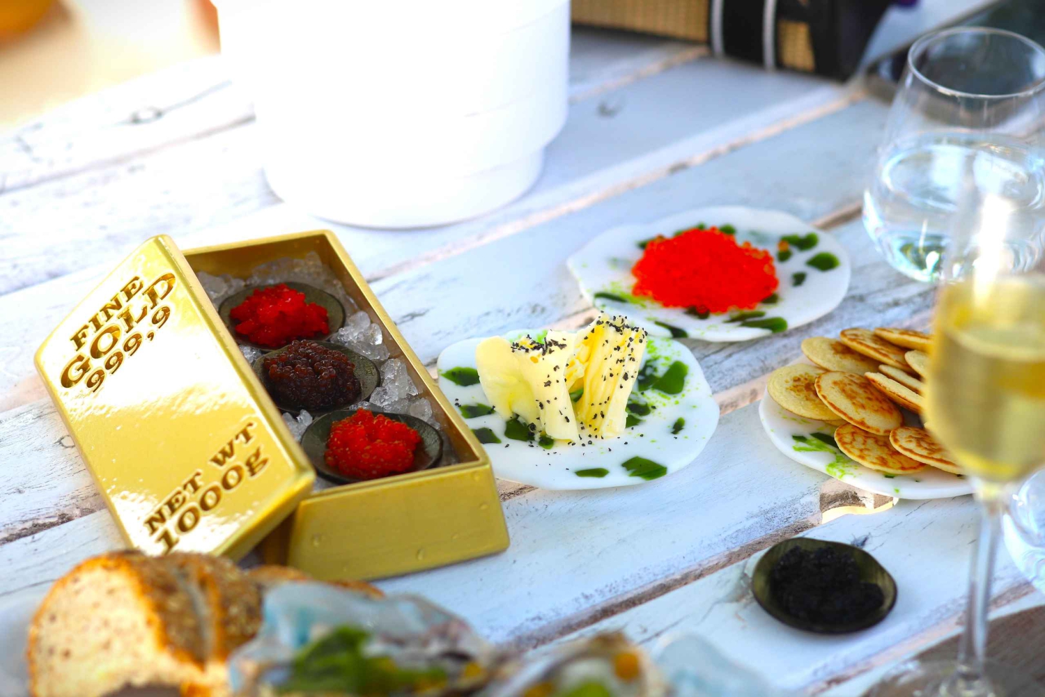 - Savor a delicious meal of pancakes with caviar and gold foil