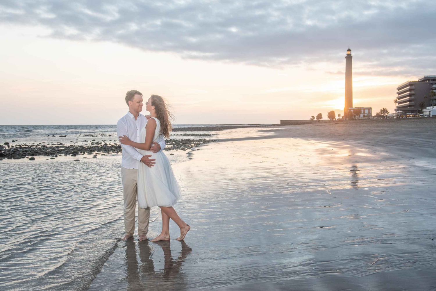 Photo session at sunset on the south coast of Gran Canaria. Discover the lighthouse of Maspalomas, take pictures next to its spectacular Dunes